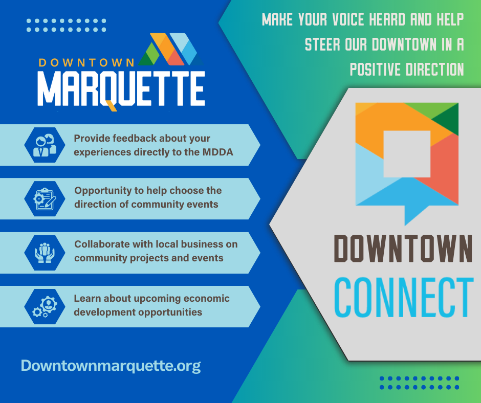 Downtown Connect is your opportunity to have a direct voice in shaping the future of Downtown Marquette. These meetings are where major decisions are made on community events, initiatives, and development projects that affect us all. Is there something you’d like to see brought to life downtown, or a change you believe would better serve the business community? Please attend, share your perspective, and help us make decisions that strengthen and grow our downtown together.
