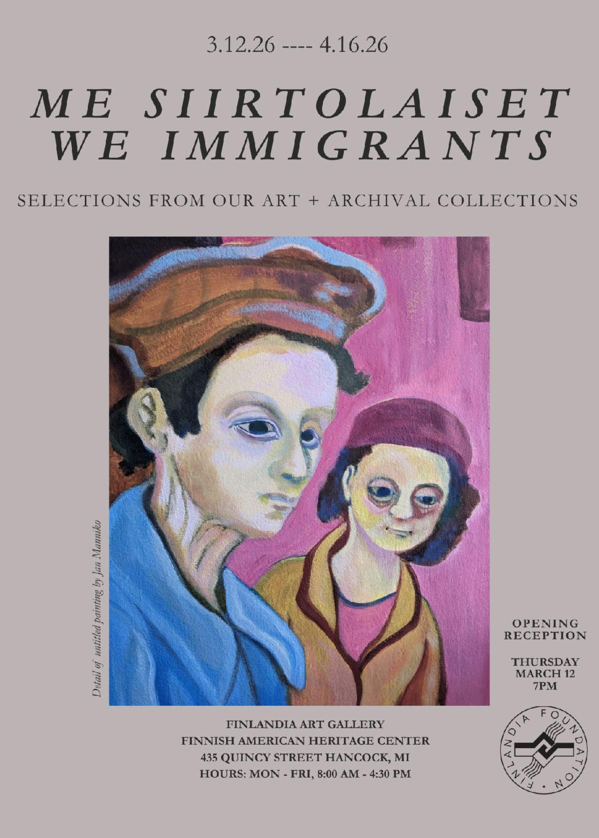 HANCOCK, Mich. – Art, artifacts, and oral histories come together to tell stories of Finnish migration to the United States in the new exhibit “Me Siirtolaiset | We Immigrants,” which opens March 12 at Finlandia Art Gallery.