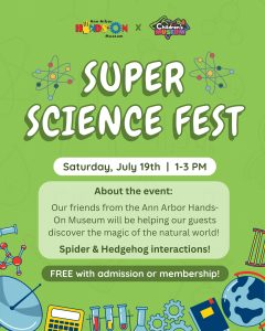 Join us at the Upper Peninsula Children’s Museum on Saturday, July 19th, from 1-3 for Super Science Fest!